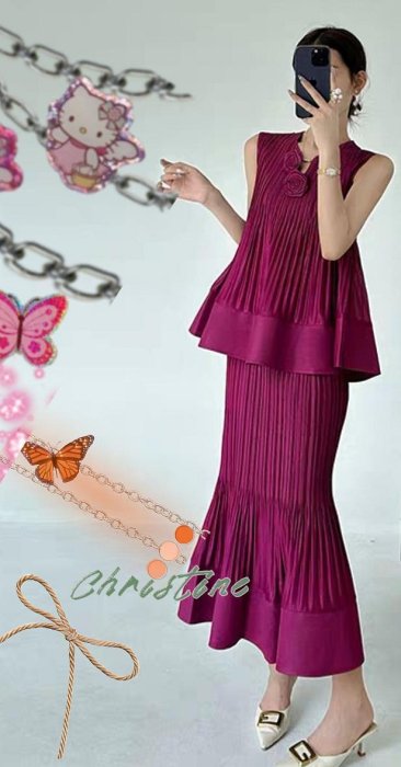 優寶購物《ubao.Tw》特貨品商城,黑貓宅配,取貨付款,【日の宅~褶皺傘型玫瑰花飾品上衣+長裙】25新色上市❤️高瘦感☆優月精品女裝☆三宅一生☆摺衣‧褶衣‧折衣‧褶皺風☆MePP。特製不退 | Yahoo拍賣