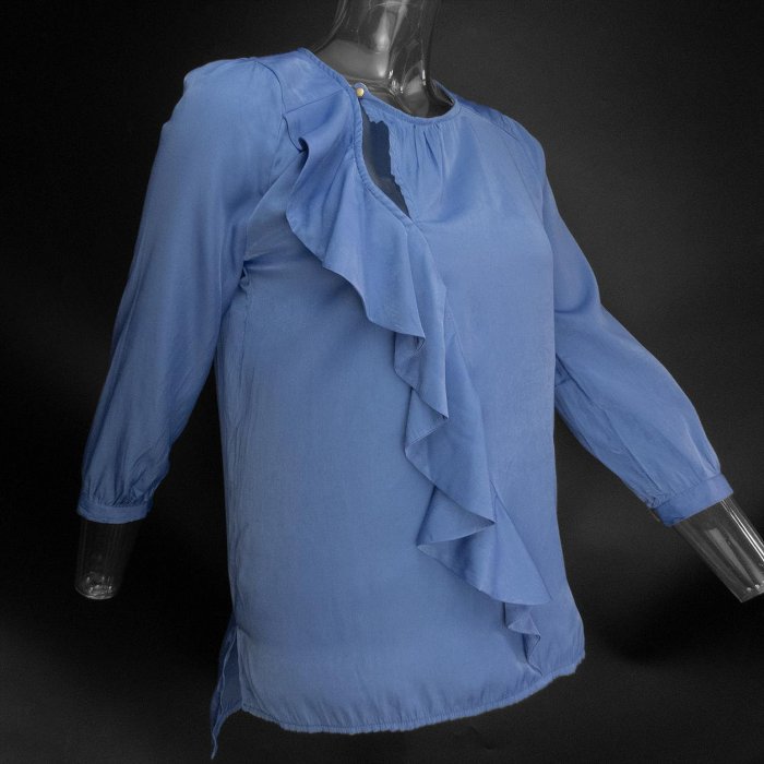 優寶購物《ubao.Tw》特貨品商城,黑貓宅配,取貨付款,法國知名品牌KOOKAI勿忘我藍色特殊設計荷葉7分袖上衣 | Yahoo拍賣