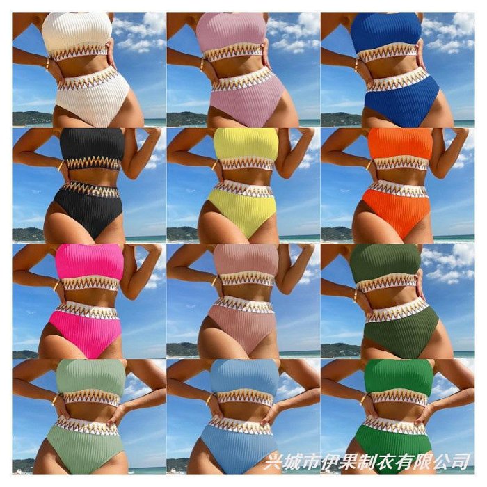 優寶購物《ubao.Tw》特貨品商城,黑貓宅配,取貨付款,快速出貨 2024新款歐美高腰分體女士泳衣多色bikini條紋純色性感比基尼泳裝 | Yahoo拍賣