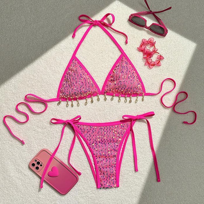 優寶購物《ubao.Tw》特貨品商城,黑貓宅配,取貨付款,快速出貨 24年亮片系繩掛貝殼三點式比基尼 歐美性感女士分體泳衣亮片泳衣 | Yahoo拍賣