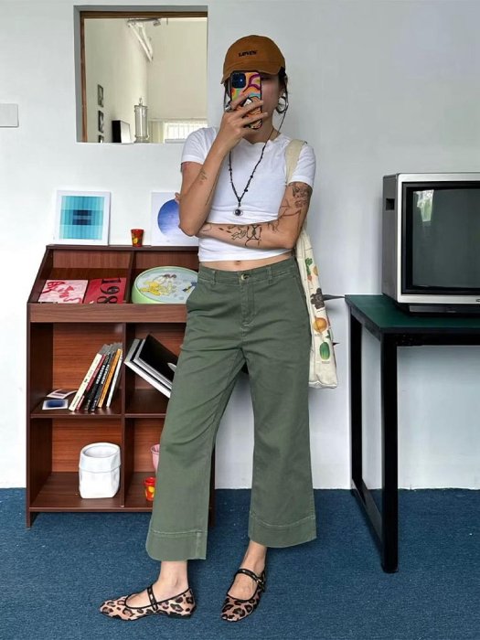 優寶購物《ubao.Tw》特貨品商城,黑貓宅配,取貨付款,. NL Select Shop .歐美風軍綠色休閒利落版型八分褲 | Yahoo拍賣