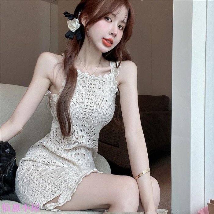 優寶購物《ubao.Tw》特貨品商城,黑貓宅配,取貨付款,韓版 及膝洋裝 白色 純欲風 波西米亞洋裝 鏤空 針織吊帶裙 設計感 氣質洋裝 度假風 收腰顯瘦-佰惠小屋 | Yahoo拍賣