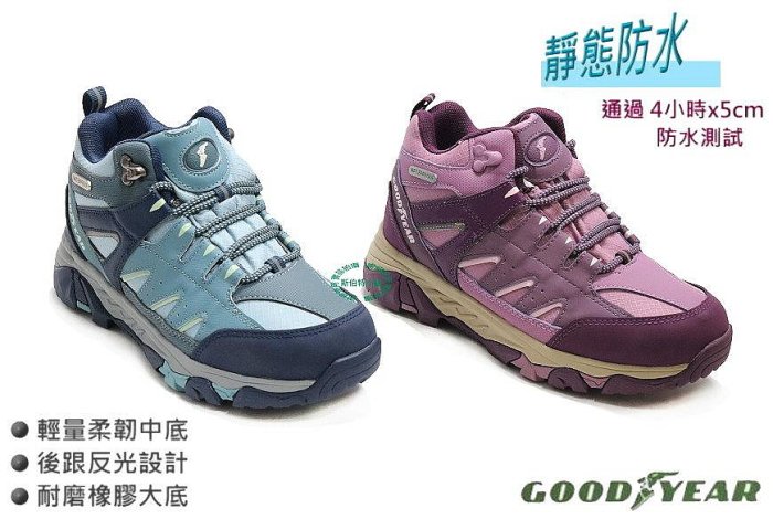 優寶購物《ubao.Tw》特貨品商城,黑貓宅配,取貨付款,零碼出清~固特異GOOD YEAR女款靜態防水系列戶外健行鞋 休閒鞋 工作鞋- 灰藍22516 -藕紫22517 | Yahoo拍賣