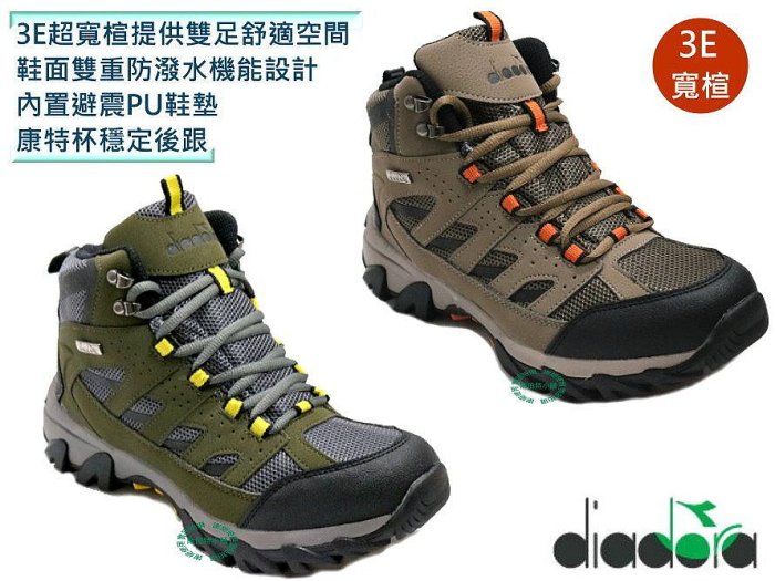 優寶購物《ubao.Tw》特貨品商城,黑貓宅配,取貨付款,零碼出清~DIADORA 男款3E寬楦 防潑水登山鞋 郊山鞋 多功能鞋-綠73237-卡其73238 | Yahoo拍賣