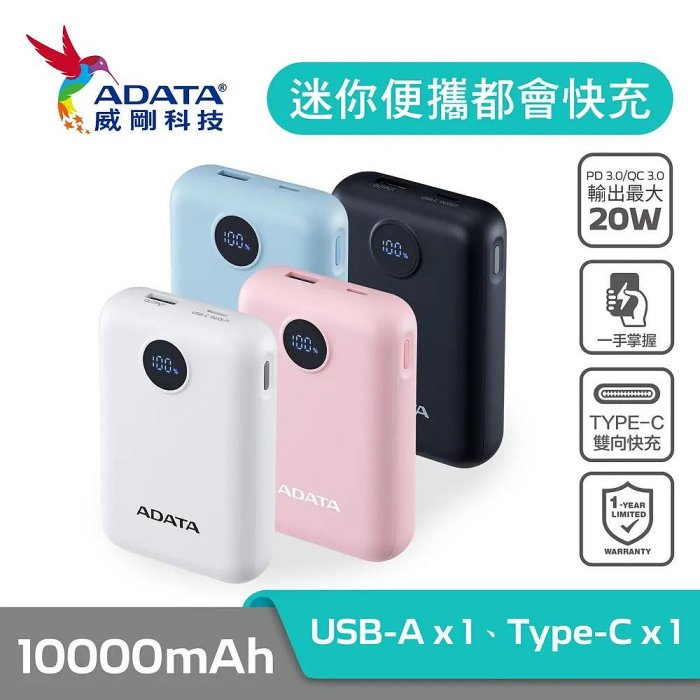 優寶購物《ubao.Tw》特貨品商城,黑貓宅配,取貨付款,威剛 ADATA C100 Digital 10000mAh PD/QC 20W 高效快充行動電源【風和資訊】 | Yahoo拍賣