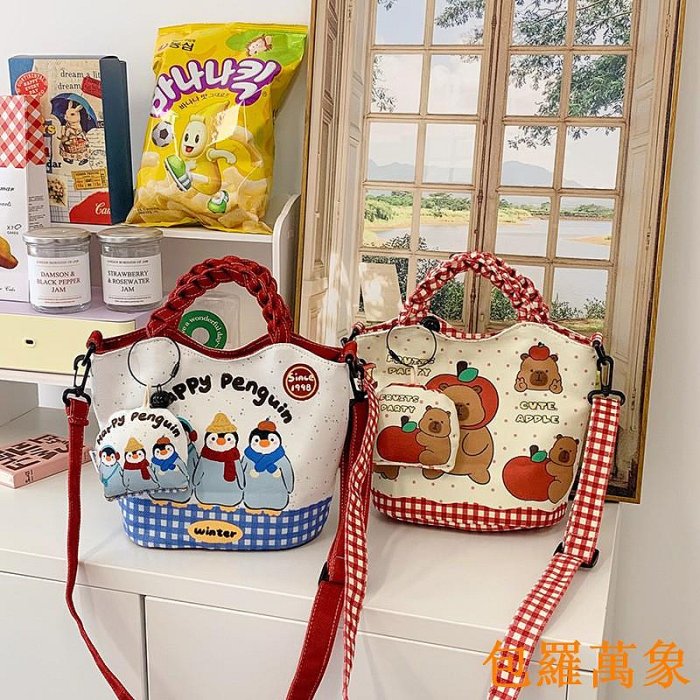 優寶購物《ubao.Tw》特貨品商城,黑貓宅配,取貨付款,高顏值卡通水桶包可愛掛件大容量手提包包文藝清新森系斜跨帆布包 | Yahoo拍賣
