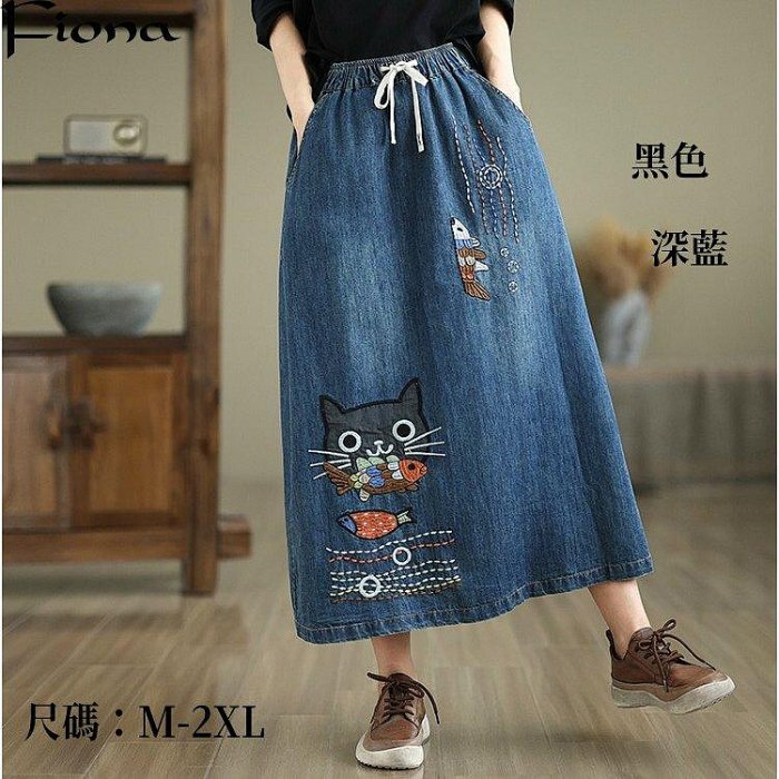 優寶購物《ubao.Tw》特貨品商城,黑貓宅配,取貨付款,✨免運✨平價衣 薄款水洗 可愛貓咪刺繡 A字裙 長裙 牛仔裙【費歐娜 】M250703 | Yahoo拍賣