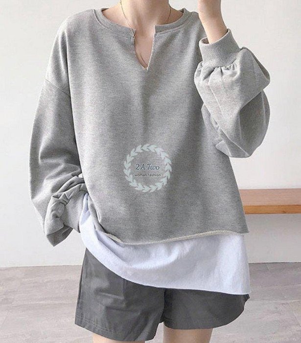 優寶購物《ubao.Tw》特貨品商城,黑貓宅配,取貨付款,MM【2A Two】韓貨✔️好看假兩件式⌒小V領中長款長袖T恤 長袖上衣『BA0790』 | Yahoo拍賣