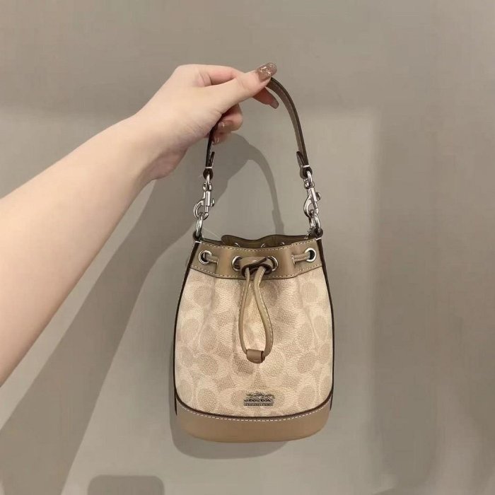 優寶購物《ubao.Tw》特貨品商城,黑貓宅配,取貨付款,原廠蔻斜挎家新款DEMPSEY抽繩水桶包經典標志手提包老花單肩 | Yahoo拍賣