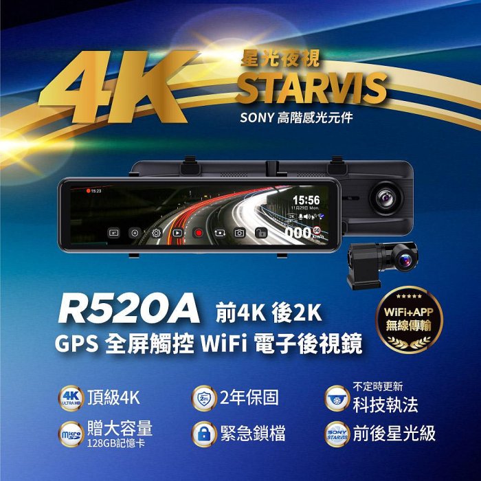 優寶購物《ubao.Tw》特貨品商城,黑貓宅配,取貨付款,衛迅科技~【快譯通】 R520A 4K 電子後視鏡 行車記錄器 ~ GPS 測速 全屏觸控 WiFi傳輸 @同等級~ S95A S95B | Yahoo拍賣