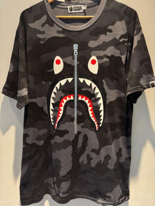 優寶購物《ubao.Tw》特貨品商城,黑貓宅配,取貨付款,二手BAPE A Bathing Ape 黑色 迷彩鯊魚短袖尺寸XL | Yahoo拍賣