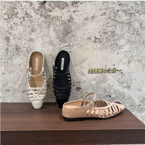優寶購物《ubao.Tw》特貨品商城,黑貓宅配,取貨付款,【木棉衣舖】法式内增高編織鏤空包頭一字扣半拖鞋-0731 | Yahoo拍賣