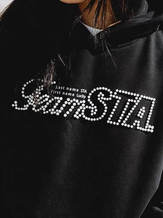 優寶購物《ubao.Tw》特貨品商城,黑貓宅配,取貨付款,嚴選 STA2024 冬季加絨頭連帽衛衣,黑絨錦繡星標設計 - 2208 星標 字母 珍珠釘珠衛衣 | Yahoo拍賣