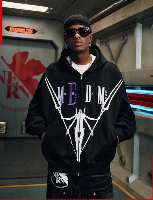 優寶購物《ubao.Tw》特貨品商城,黑貓宅配,取貨付款,嚴選MEDMxEVA聯名13號機款黑絨潮牌連帽衫秋冬穿美式風潮黑色35 黑色 連帽衫 衛衣 | Yahoo拍賣