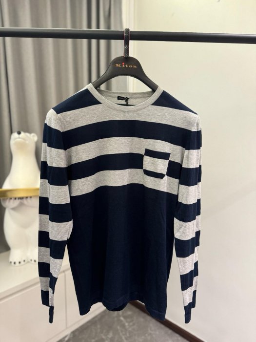 優寶購物《ubao.Tw》特貨品商城,黑貓宅配,取貨付款,嚴選kiton原折男士灰藍條紋長袖T恤,高質100%棉M碼 106-93胸圍 M 碰撞條紋 襯衫 | Yahoo拍賣