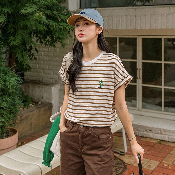 優寶購物《ubao.Tw》特貨品商城,黑貓宅配,取貨付款,Bellee 正韓 可愛刺繡仙人掌短袖棉質上衣 (4色) 【0724-46】 | Yahoo拍賣