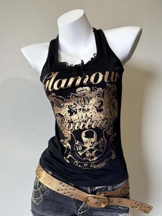 優寶購物《ubao.Tw》特貨品商城,黑貓宅配,取貨付款,嚴選 Vintage 工字蕾絲拼接背心 黑金印花 現貨 尺寸適中 腰身收斂 透視優雅 長度52cm 工字背心 花紋 上衣 拼接 | Yahoo拍賣