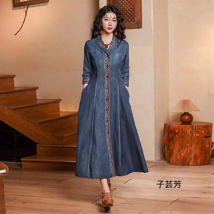 優寶購物《ubao.Tw》特貨品商城,黑貓宅配,取貨付款,【子芸芳】2025年春秋季新款修身顯瘦復古開襟重工刺繡牛仔洋裝連衣裙 | Yahoo拍賣