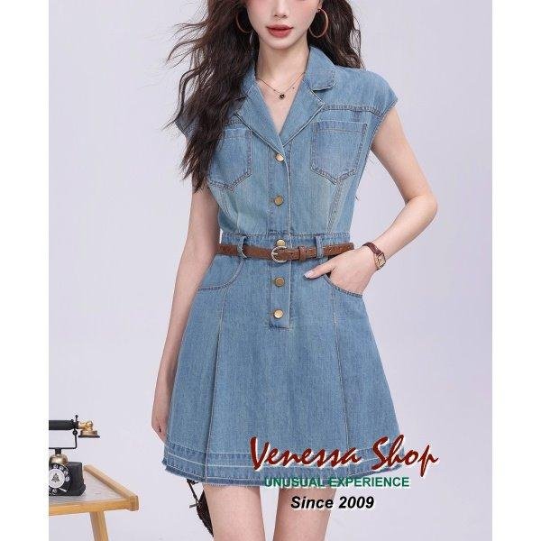 優寶購物《ubao.Tw》特貨品商城,黑貓宅配,取貨付款,小V私家~ 小個子友好 輕夏牛仔 INS 2025新款 女の復古高腰單寧連身裙 短袖洋裝 短裙 (K2017) | Yahoo拍賣