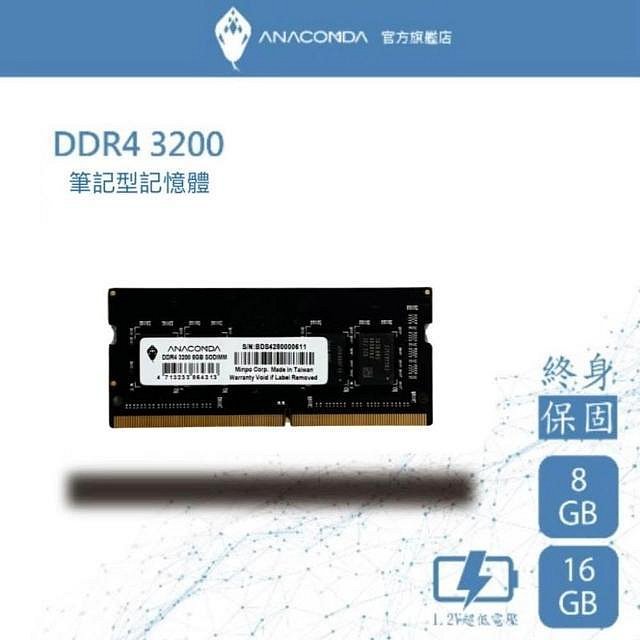 優寶購物《ubao.Tw》特貨品商城,黑貓宅配,取貨付款,☆偉斯科技☆ANACOMDA 巨蟒 DDR4 3200 SODIMM 16GB 筆記型專用記憶體 有限終身保固 D4 記憶體 工業包裝 | Yahoo拍賣