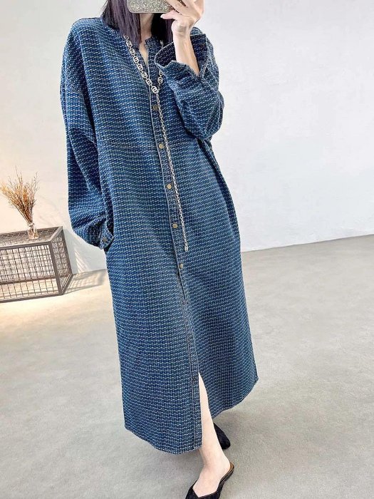 優寶購物《ubao.Tw》特貨品商城,黑貓宅配,取貨付款,V領鬆弛感 蝙蝠袖特製提花牛仔連身裙 | Yahoo拍賣