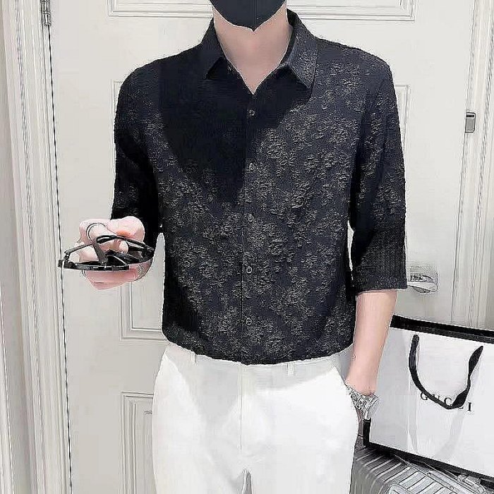 優寶購物《ubao.Tw》特貨品商城,黑貓宅配,取貨付款,提花襯衫男 3色M-3XL 短袖襯衫男 夏季新款休閒襯衫 正韓衣著潮牌 韓版緊身短袖襯衫 七分袖襯衫 - | Yahoo拍賣