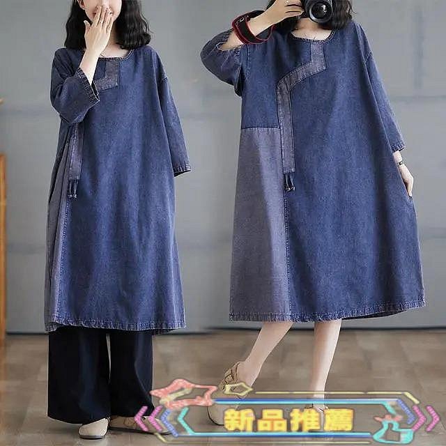 優寶購物《ubao.Tw》特貨品商城,黑貓宅配,取貨付款,復古牛仔拼接連衣裙女春秋季新款高雅氣質舒適寬松顯瘦休閑中長裙 | Yahoo拍賣