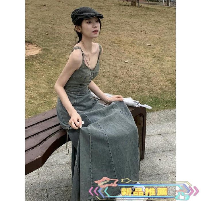 優寶購物《ubao.Tw》特貨品商城,黑貓宅配,取貨付款,美式辣妹復古牛仔吊帶連衣裙女夏季新款設計感收腰顯瘦氣質長裙子 | Yahoo拍賣