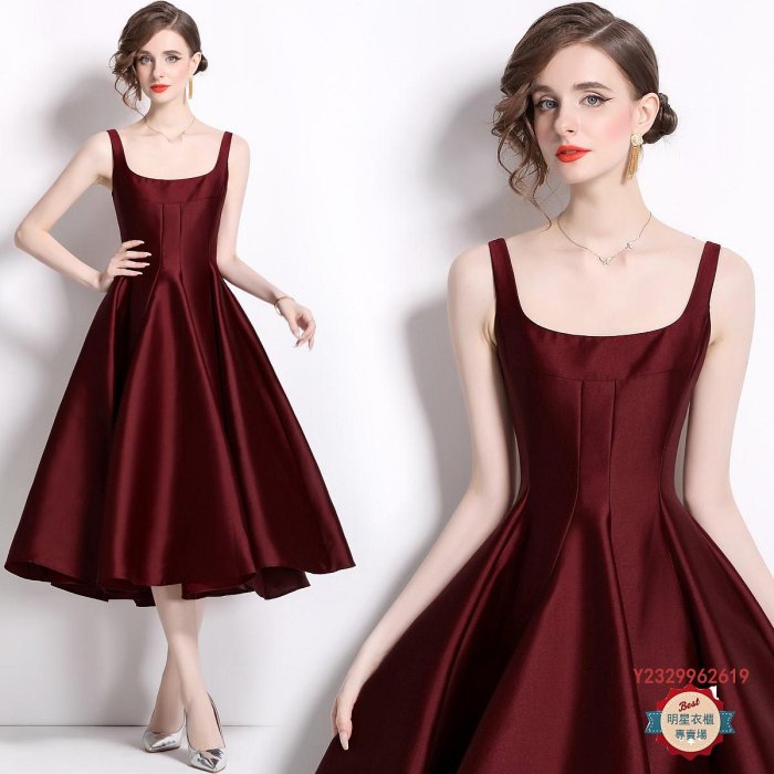 優寶購物《ubao.Tw》特貨品商城,黑貓宅配,取貨付款,明星衣櫃=新款女裝收腰顯瘦棗紅色小禮服吊帶裙連身裙洋裝 | Yahoo拍賣