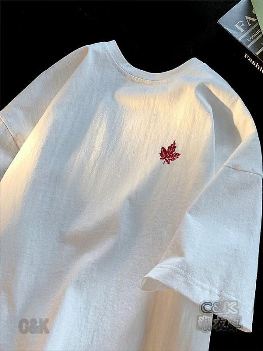 優寶購物《ubao.Tw》特貨品商城,黑貓宅配,取貨付款,潮衣庫『刺繡短袖T恤男潮牌ins寬松體恤美式楓葉繡花體恤上衣』休閒T恤襯衫POLO衫心男上衣 | Yahoo拍賣