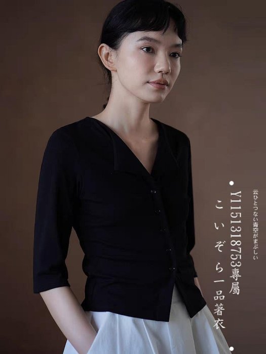 優寶購物《ubao.Tw》特貨品商城,黑貓宅配,取貨付款,||一品著衣|| 自然主義黑色T恤 V領小翻邊 中袖合身彈力顯瘦上衣 | Yahoo拍賣