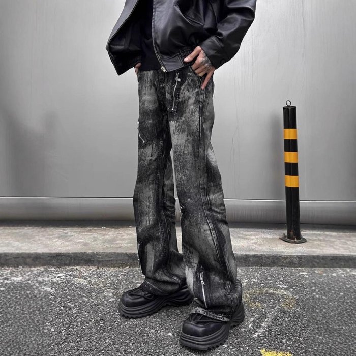優寶購物《ubao.Tw》特貨品商城,黑貓宅配,取貨付款,男士 大碼 男生 寬鬆水洗扎染微喇牛仔褲男美式vibe潮牌復古痞帥重工小眾拉鏈直筒長褲 | Yahoo拍賣