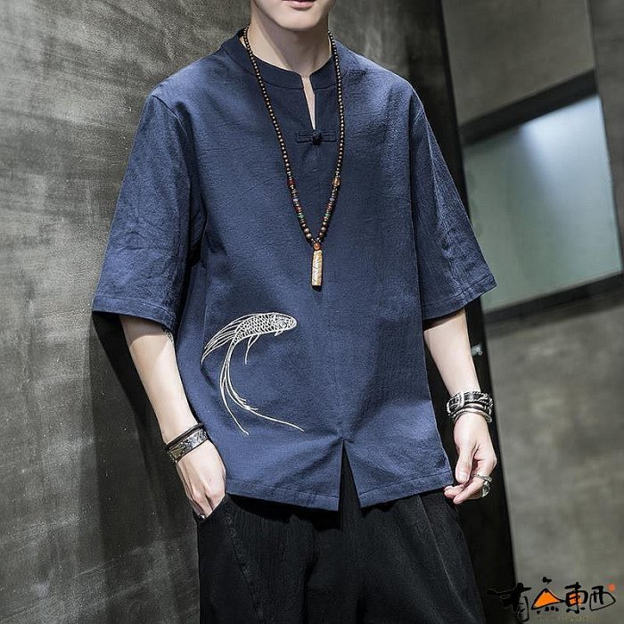 優寶購物《ubao.Tw》特貨品商城,黑貓宅配,取貨付款,民族風半袖T桖夏季中國風大碼古風刺繡亞麻t恤男唐裝佛系漢短袖 | Yahoo拍賣