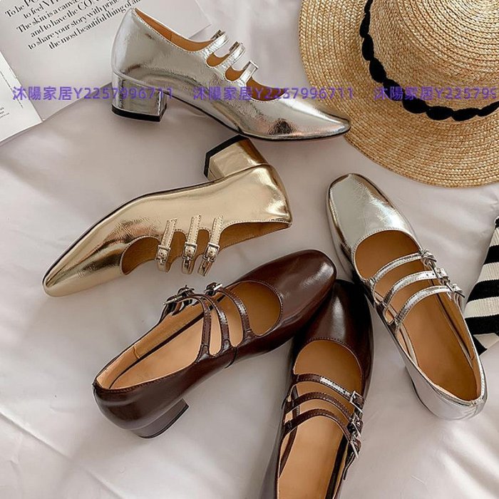 優寶購物《ubao.Tw》特貨品商城,黑貓宅配,取貨付款,carel Mary瑪麗珍鞋女法式復古銀色粗跟三扣帶高跟鞋中跟金色單鞋-沐陽家居 | Yahoo拍賣