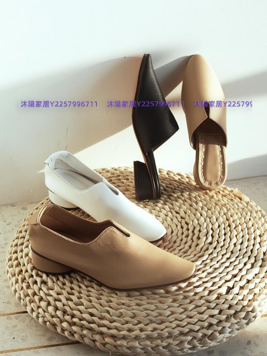 優寶購物《ubao.Tw》特貨品商城,黑貓宅配,取貨付款,2023早春中跟奶奶鞋女半拖真皮oyster仙女風粗跟穆勒鞋女尖頭單鞋-沐陽家居 | Yahoo拍賣