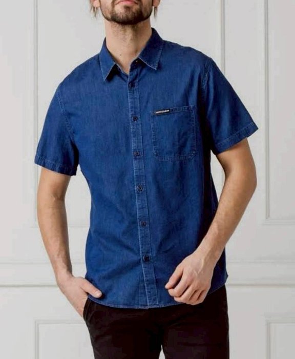 優寶購物《ubao.Tw》特貨品商城,黑貓宅配,取貨付款,CALVIN KLEIN JEANS 凱文克萊 男深藍彈性短袖牛仔襯衫M | Yahoo拍賣