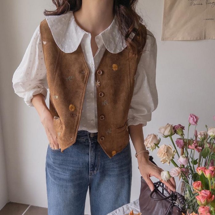 優寶購物《ubao.Tw》特貨品商城,黑貓宅配,取貨付款,Bellee 正韓 質感超美花朵刺繡麂皮背心 (2色) 【0912-23】 | Yahoo拍賣