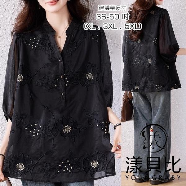 優寶購物《ubao.Tw》特貨品商城,黑貓宅配,取貨付款,漾貝比【9155612】中大尺碼女裝 高級立體花朵刺繡立領小V領上衣.黑(36-50) | Yahoo拍賣
