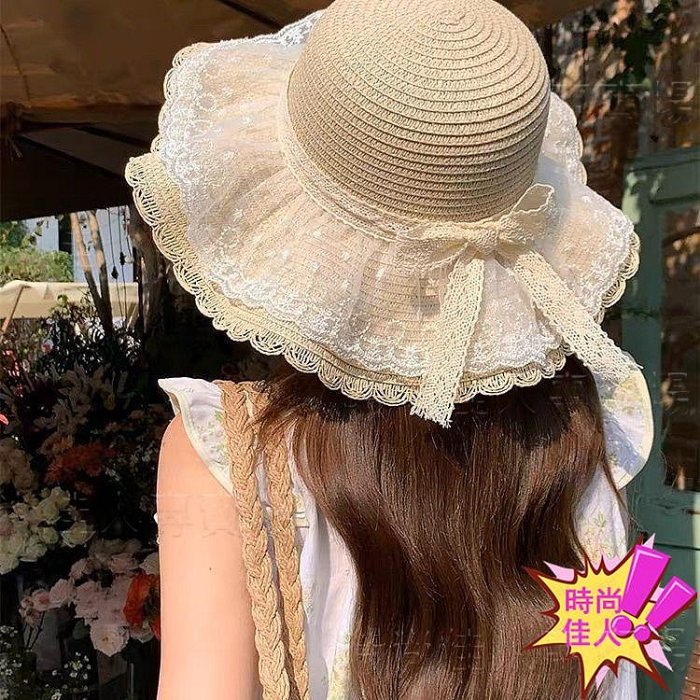 優寶購物《ubao.Tw》特貨品商城,黑貓宅配,取貨付款,時尚佳人=法式甜美蝴蝶結蕾絲草帽女夏季海邊度假沙灘帽戶外拍照遮陽防曬帽 | Yahoo拍賣
