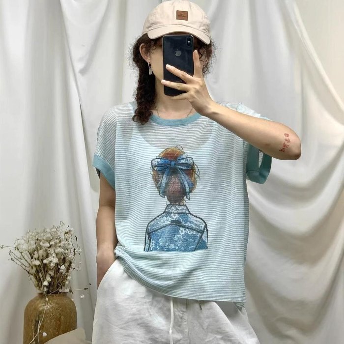 優寶購物《ubao.Tw》特貨品商城,黑貓宅配,取貨付款,新款上架2025夏季 韓版寬松減齡撞色印花圓領套頭針織衫百搭輕薄舒適T恤女明星大牌同款服裝 | Yahoo拍賣