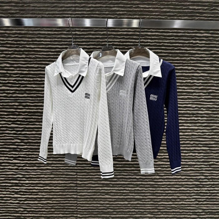 優寶購物《ubao.Tw》特貨品商城,黑貓宅配,取貨付款,新款上架mi u 假兩件針織上衣拼接上衣女25早秋8月新品學院風針織上衣明星大牌同款服裝 | Yahoo拍賣