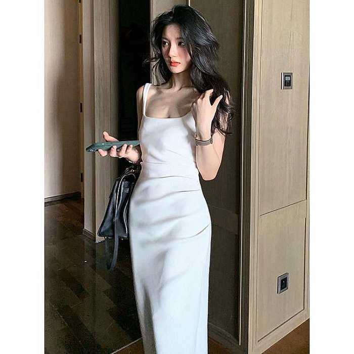 優寶購物《ubao.Tw》特貨品商城,黑貓宅配,取貨付款,顯瘦洋裝 過膝長洋裝 連身裙 連衣裙 內搭性感露背褶皺顯瘦感氣質禮服裙 當天發法式白色吊帶洋裝女 Komori | Yahoo拍賣