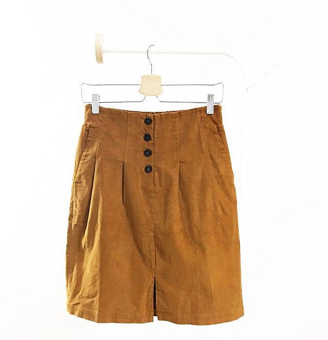 優寶購物《ubao.Tw》特貨品商城,黑貓宅配,取貨付款,Belle^^ SALE ESPRIT 焦糖咖 排扣 設計 絨布 及膝裙 短裙 | Yahoo拍賣
