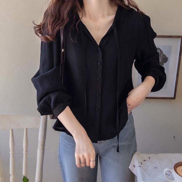 優寶購物《ubao.Tw》特貨品商城,黑貓宅配,取貨付款,Bellee 正韓 可愛蝴蝶結荷葉領豆扣長袖混紡上衣 (2色) 【0930-18】 | Yahoo拍賣