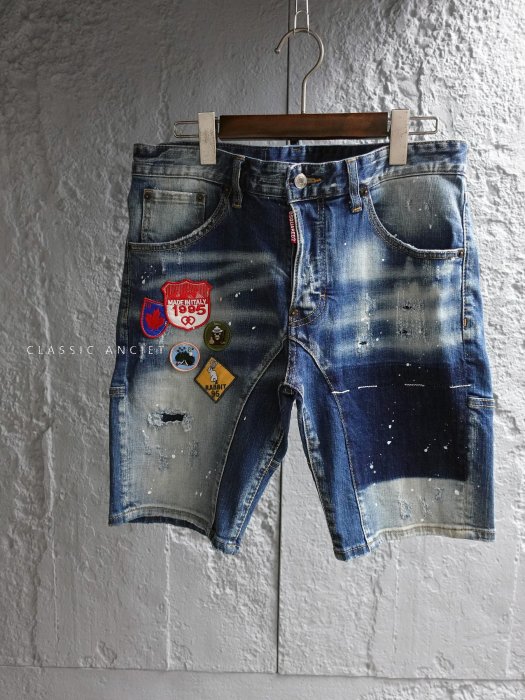 優寶購物《ubao.Tw》特貨品商城,黑貓宅配,取貨付款,CA 義大利製 Dsquared² 藍系仿舊刷紋潑漆 排扣 彈性牛仔短褲 50 一元起標無底價H510 | Yahoo拍賣