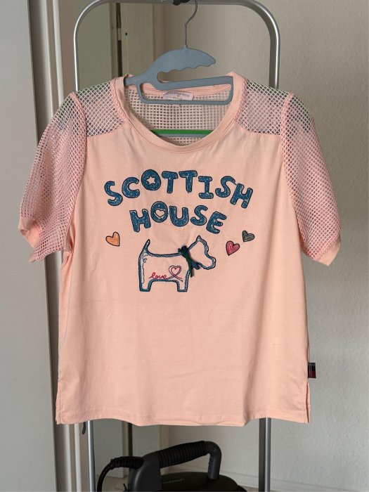 優寶購物《ubao.Tw》特貨品商城,黑貓宅配,取貨付款,Scottish house 粉橘色繡花圓領網格T恤L尺寸 | Yahoo拍賣