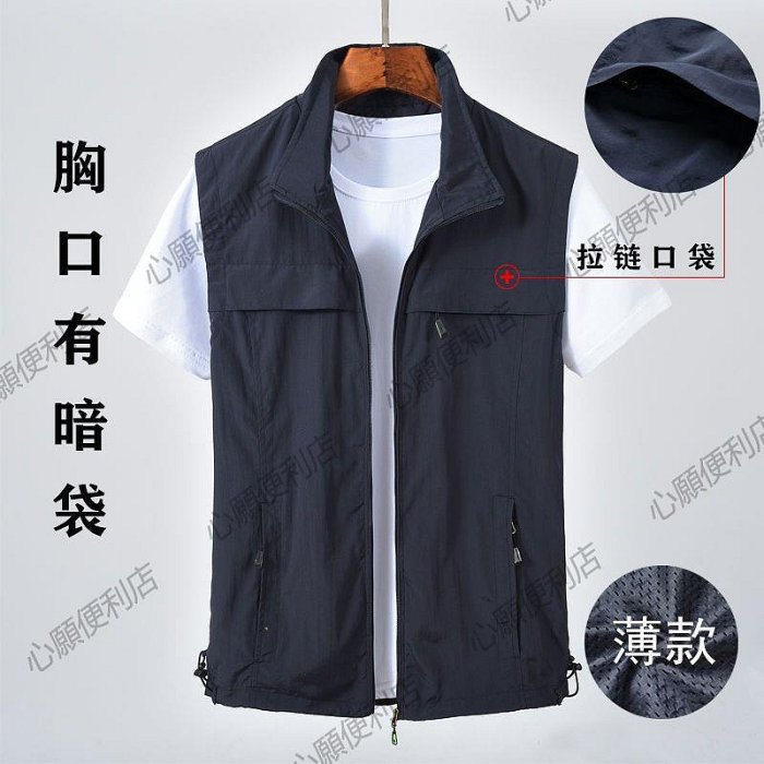 優寶購物《ubao.Tw》特貨品商城,黑貓宅配,取貨付款,春秋薄款男士馬甲純色立領休閑青中老年寬松馬夾外套戶外透氣坎肩馬甲背心外套夏天心願便利店 | Yahoo拍賣