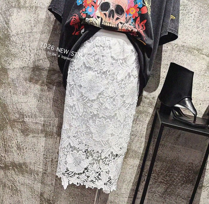 優寶購物《ubao.Tw》特貨品商城,黑貓宅配,取貨付款,+1026+韓國 鬆緊中高腰白色蕾絲窄裙 鏤空透膚雕花蕾絲及膝長裙 含內襯 包臀貼臀鉛筆裙 鏤空花邊蕾絲及膝窄裙短裙 | Yahoo拍賣