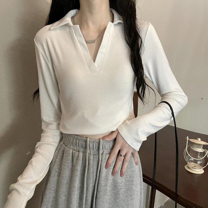優寶購物《ubao.Tw》特貨品商城,黑貓宅配,取貨付款,POLO領上衣女長袖衣服長袖T恤女短款上衣少女打底衫秋冬新款辣妹修身休閒流行女裝上衣衣服休閒服.AD09216.五號站.全館699免運 | Yahoo拍賣
