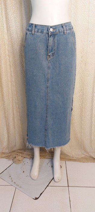 優寶購物《ubao.Tw》特貨品商城,黑貓宅配,取貨付款,Ag367領潮牛仔 牛仔藍單側邊開叉長裙L | Yahoo拍賣